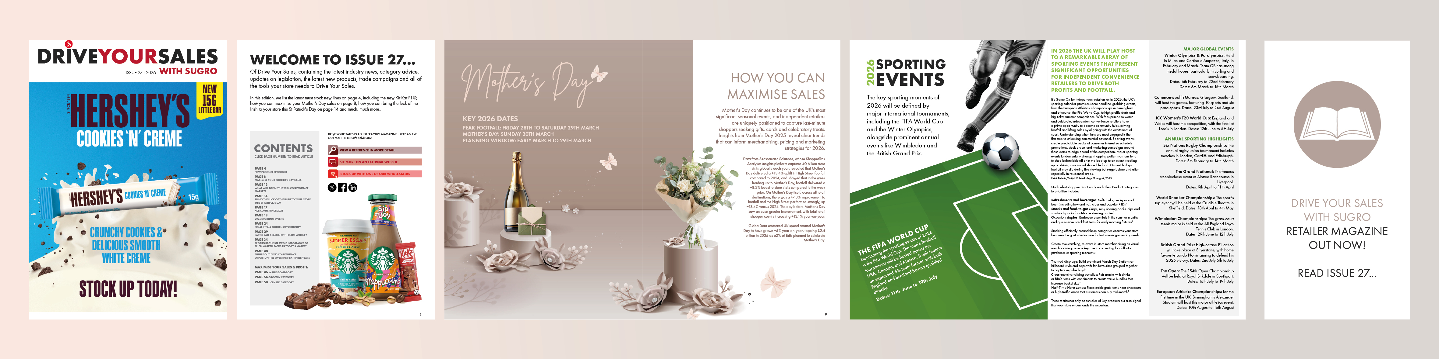 The Drive Your Sales digital magazine and web portal has been created to help retailers increase profitability whilst improving the appearance of their store. We have provided key information by category which include confectionery chocolate, confectionery sweets, chewing gum, soft drinks & energy, crisps & snacks, biscuits and cereals.